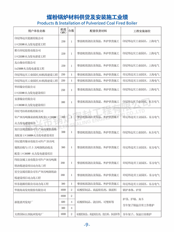 煤粉鍋爐材料供貨及安裝施工業績(一)